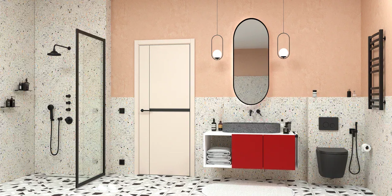 - Компланарность — свойство трёх и более векторов, расположенных на одной плоскости. Это свойство было перенесено на двери. Главная особенность компланарных дверей — коробка. Она существенно отличается от такой же части конструкции остальных дверей. Компланарная коробка делает дверное полотно единым целым, когда дверь закрыта. Наличники не выступают, а сливаются с полотном и плоскость всей конструкции остаётся цельной.